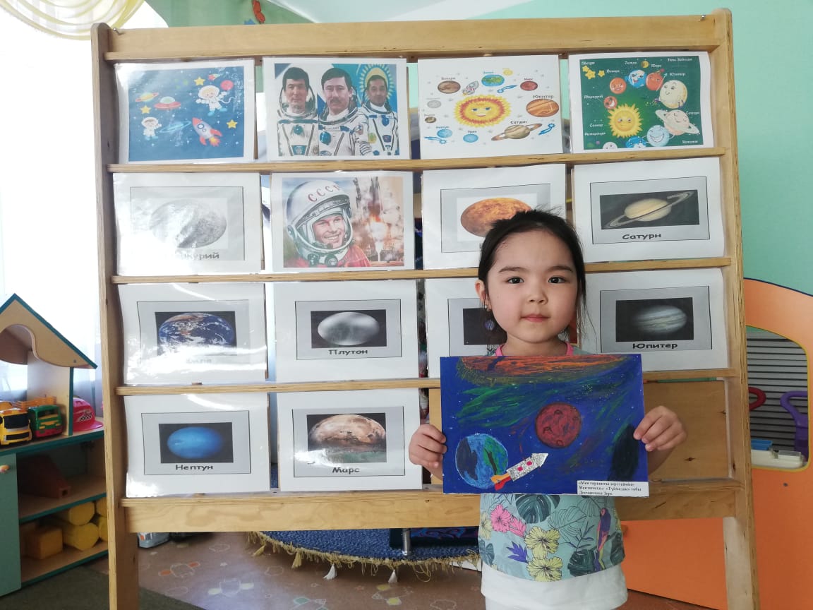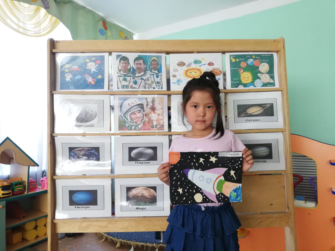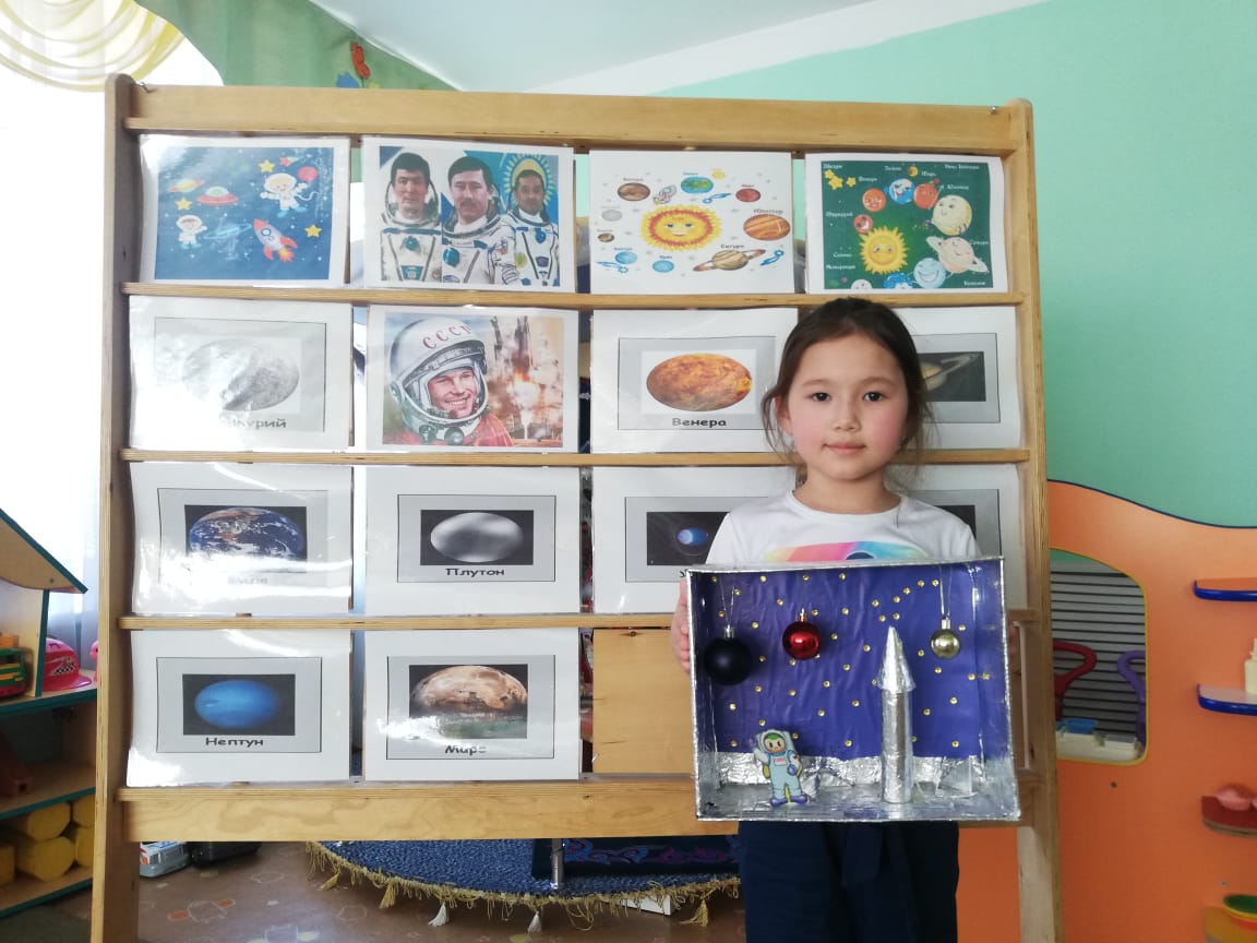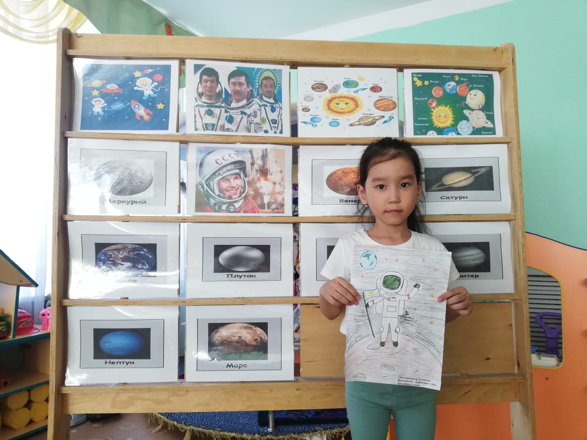 Бүгін балабақшамыздың қабырғасында Ғарышкерлер күні қарсанында жас ұрпақтың елінсүйгіш, отаншылдық сезімін оята отырып, елін, жерін сүюге, құрметтеуге тәрбиелеуді қалыптастыра отырып, 12-сәуір күні Ғарышкерлер күніне байланысты «Ғарыш әлемі» атты тақырыптық әр балабақшамыздың топтарында ұйымдастырылған оқу қызметтер, сонымен қатар бүлдіршіндер арасындағы шағын көрмелер ұйымдастырылды.