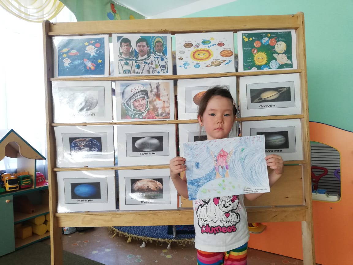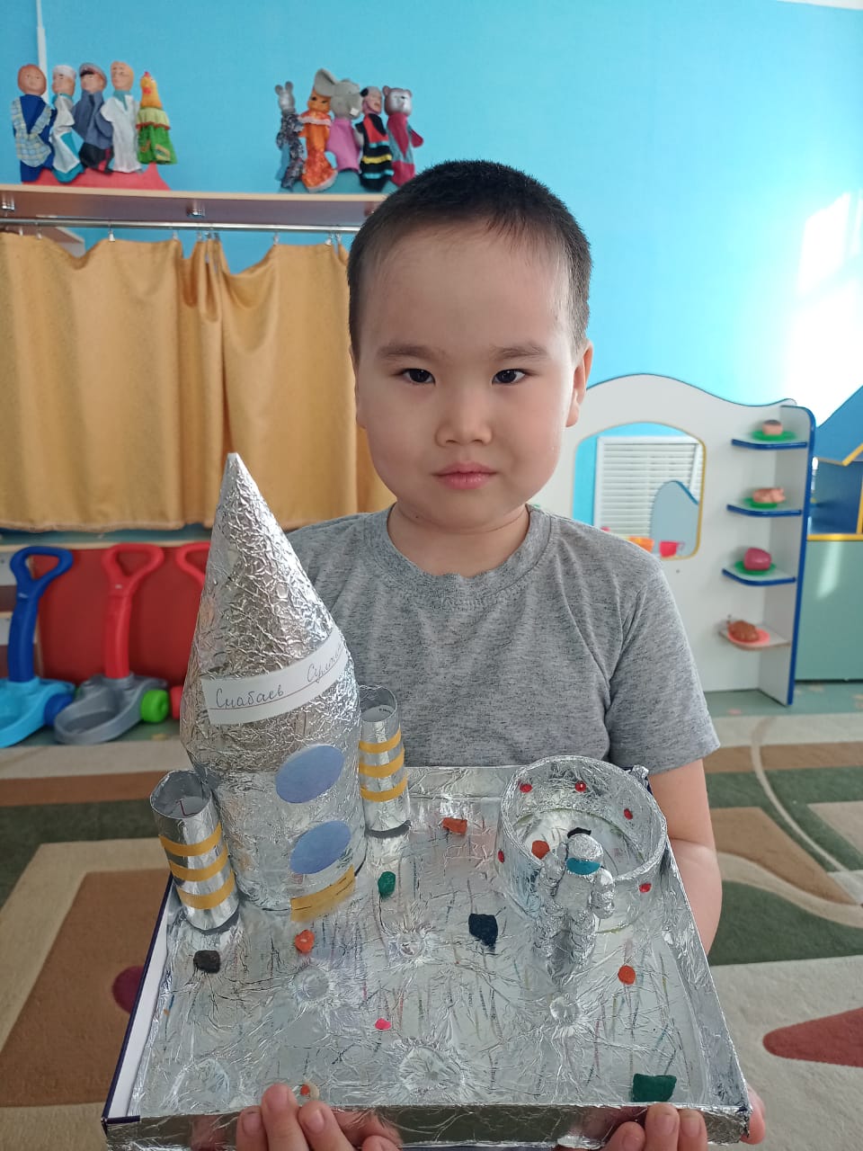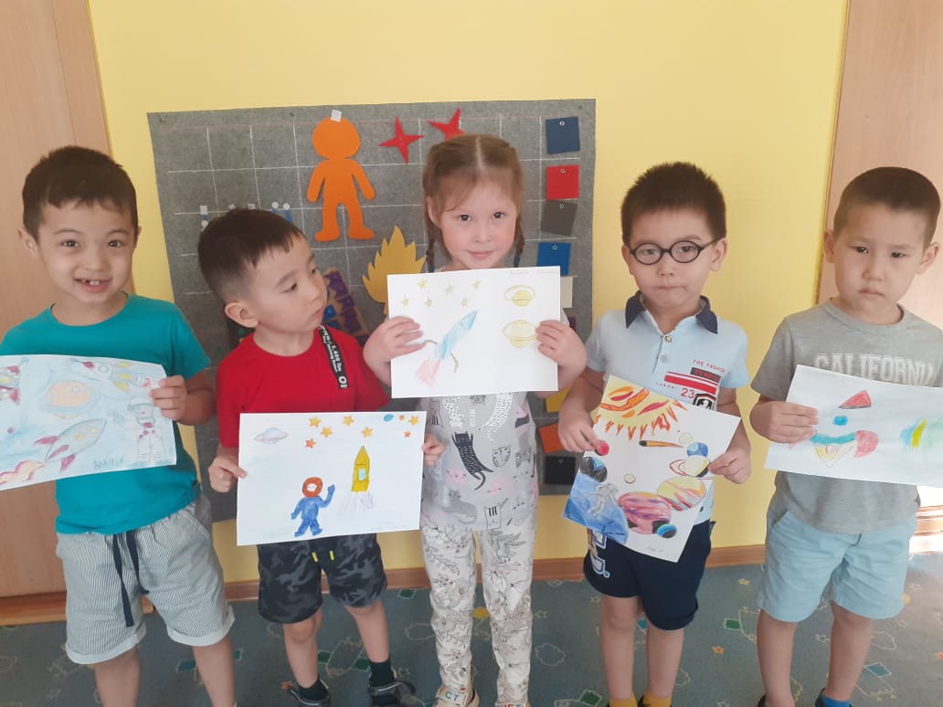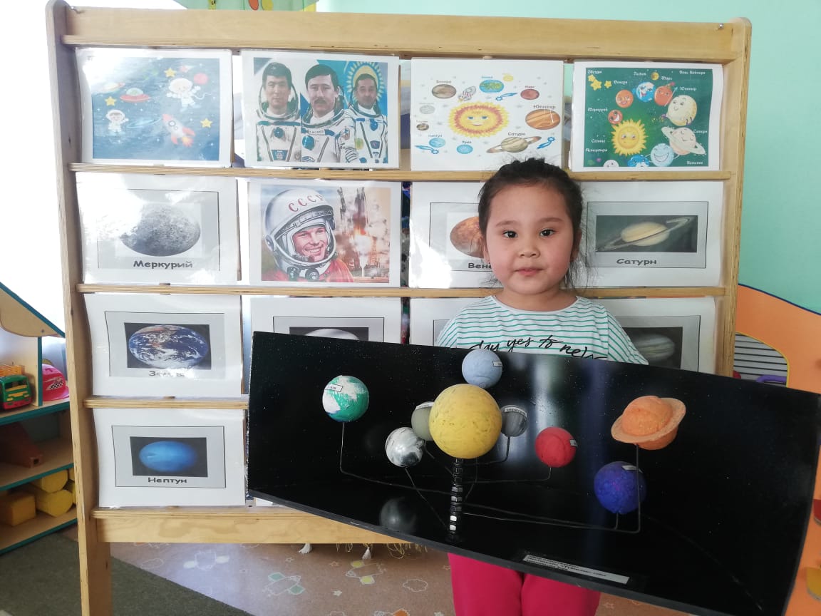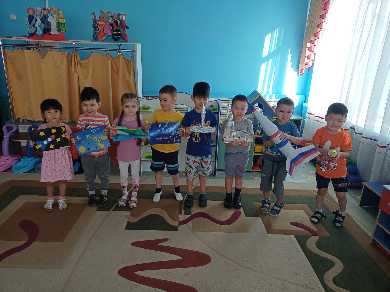 Бүгін балабақшамыздың қабырғасында Ғарышкерлер күні қарсанында жас ұрпақтың елінсүйгіш, отаншылдық сезімін оята отырып, елін, жерін сүюге, құрметтеуге тәрбиелеуді қалыптастыра отырып, 12-сәуір күні Ғарышкерлер күніне байланысты «Ғарыш әлемі» атты тақырыптық әр балабақшамыздың топтарында ұйымдастырылған оқу қызметтер, сонымен қатар бүлдіршіндер арасындағы шағын көрмелер ұйымдастырылды.