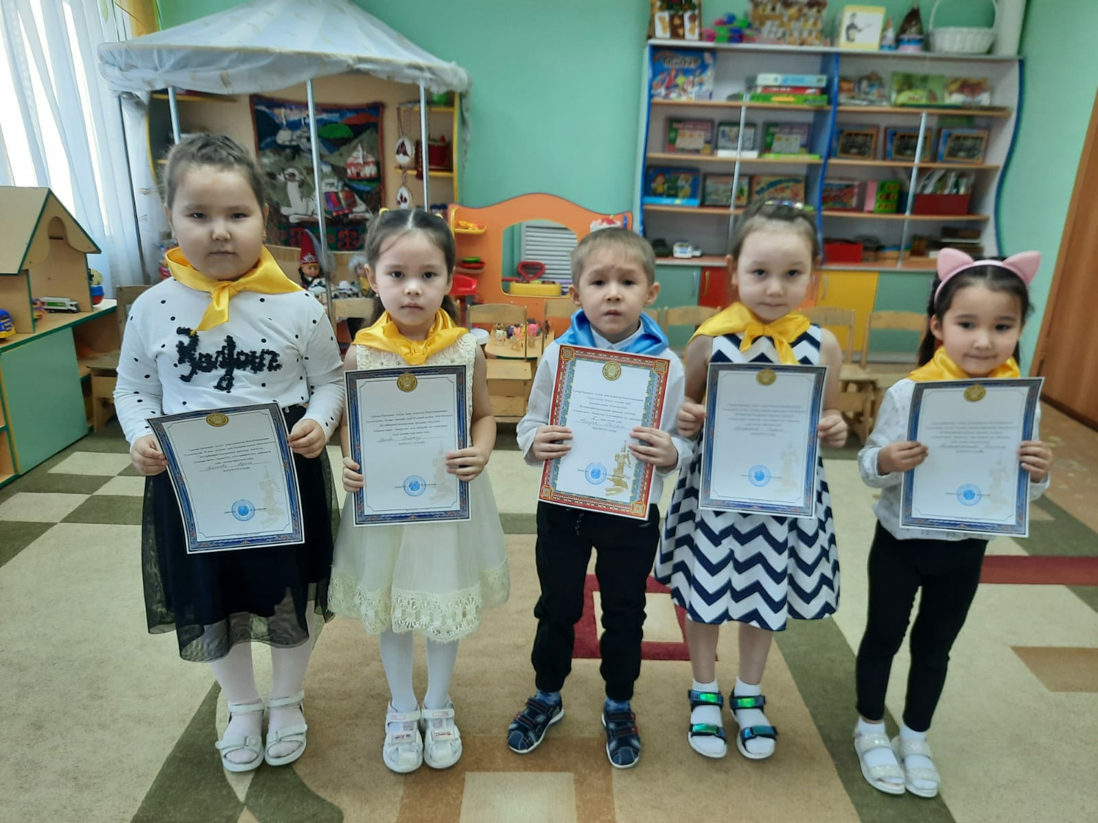 Жуырда, балабақша қабырғасында еліміздің алғашқы президент күніне және Қазақстан Республикасының Тәуелсіздігіне 30жыл толуына орай мектепалды даярлық топтарының арасында «Жырлаймын Отанымды» атты мәнерлеп оқу сайысы өткізілген болатын. Мәнерлеп оқу сайысын ұйымдастырудың мақсаты- тәуелсіз еліміздің болашағын жалғастырушы ұрпақты туған жерін, елін сүюге,Отанын қорғай білуге және құрметтеуге тәрбиелеу.Мәнерлеп оқу сайысына қатысқан балалардың бойында, Отанға, туған жерге деген ыстық ықыласы мен сүйіспеншілігі бірден сезілді. Балабақша ішінде құрылған әділ-қазылар алқасы қатысушылардың дайындаған өнерлерін бағалады.Әділ-қазылар қатысушылардың дайындаған өнерін бағалау барысында, балалардың өзі-өзі ұстауына, мәнерлігіне,сөйлеудің интонациялық экспрессивтілігіне, мимикаларына, қимыл іс-әрекеттеріне назар аударды.Әр қатысушы өз өнерін өздігімен ерекше көрсете білді.Мектепалды даярлық топтарының арасында өткізілген мәнерлеп оқу сайысында ерекше өнер көрсете білген және де ең жоғары ұпайды жинаған Ернатқызы Жібек 1 орынға ие болды.Жібек Мұқағали Мақатаевтің «Отан» атты шығармасын жатқа оқыды. Қатысушы бүлдіршіннің бойынан туған жерге, Отанға деген патриоттық сезімі мен ұлтжандылығы байқалды. Ал 2 орындарға ие болған Жандар Мейірім мен Сәрінжіп Балжан бүлдіршіндері өз тұла бойындағы Отанға деген ыстық махаббатын ерекше өлең жолдары арқылы жеткізе білді.Соңғы 3 орынға ие болған Кенжебек Айсултан мен Сағынтай Медина балғындардың бойында елге деген құрметті таныта білуі, ана сүтінен дарығанына мен сенімдімін.Қалған қатысушы балаларға «Жырлаймын Отанымды» атты мәнерлеп оқу сайысына белсенді қатысқандары үшін мадақтама грамоталарымен марапатталды. Балабақша әкімшілігі алдағы уақытта жас бүлдіршіндердің арасында осындай танымдық кештерді тағы да өткізуді жоспарлауда.