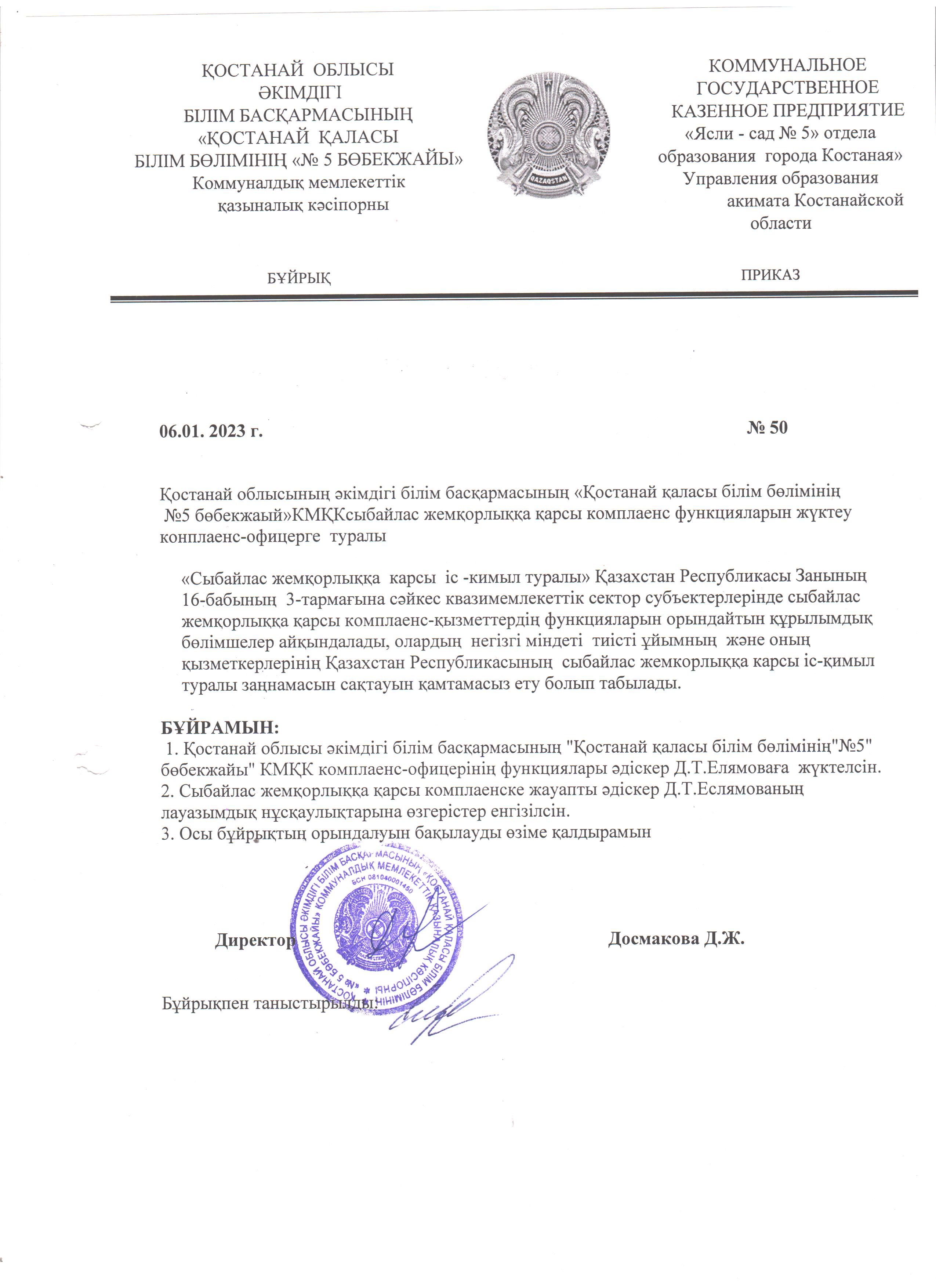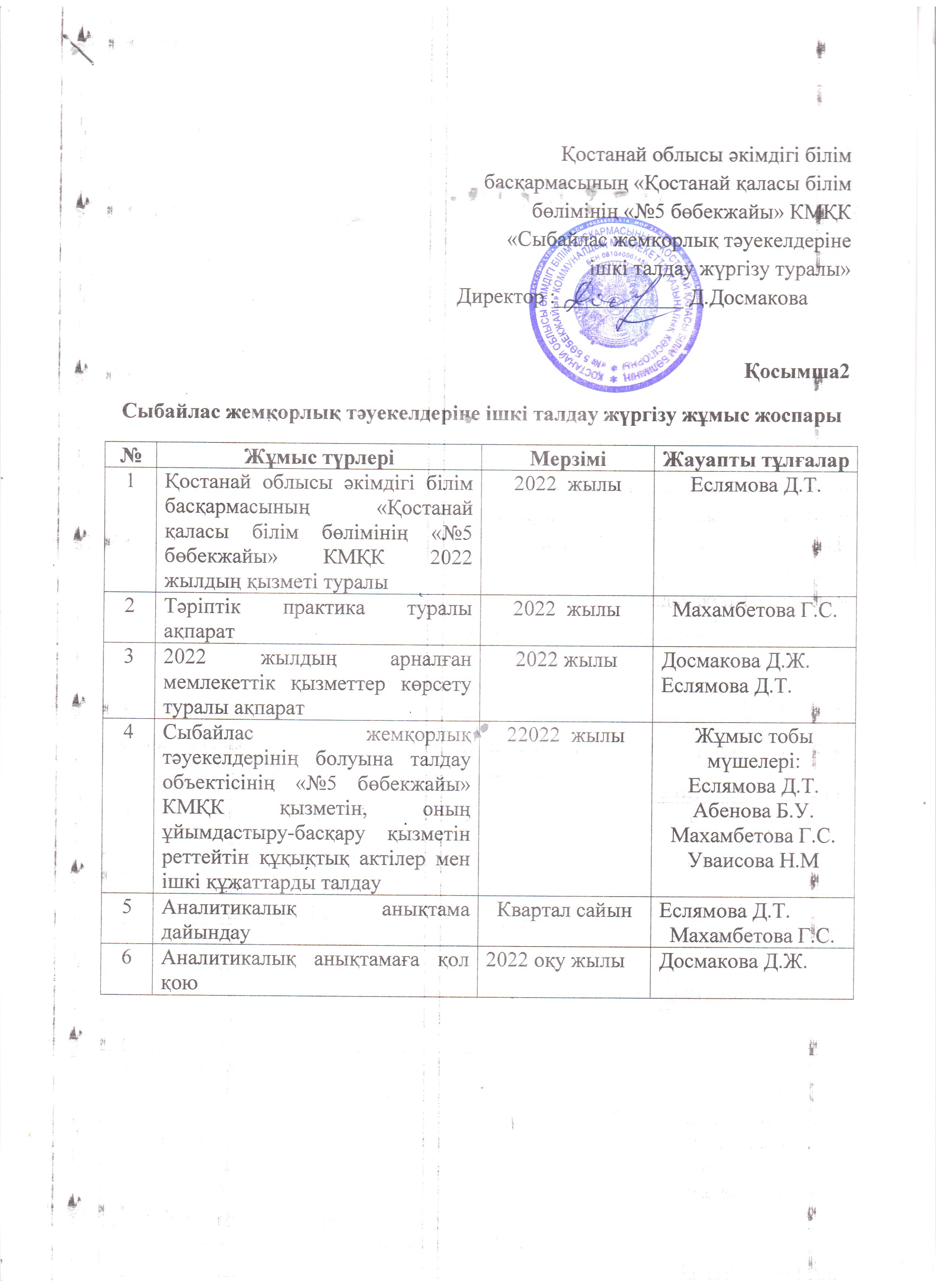 Сыбайлас жемқорлық тәуікелдеріне ішкі талдау жүргізуі туралы 15.09.2023БҰЙРЫҚ