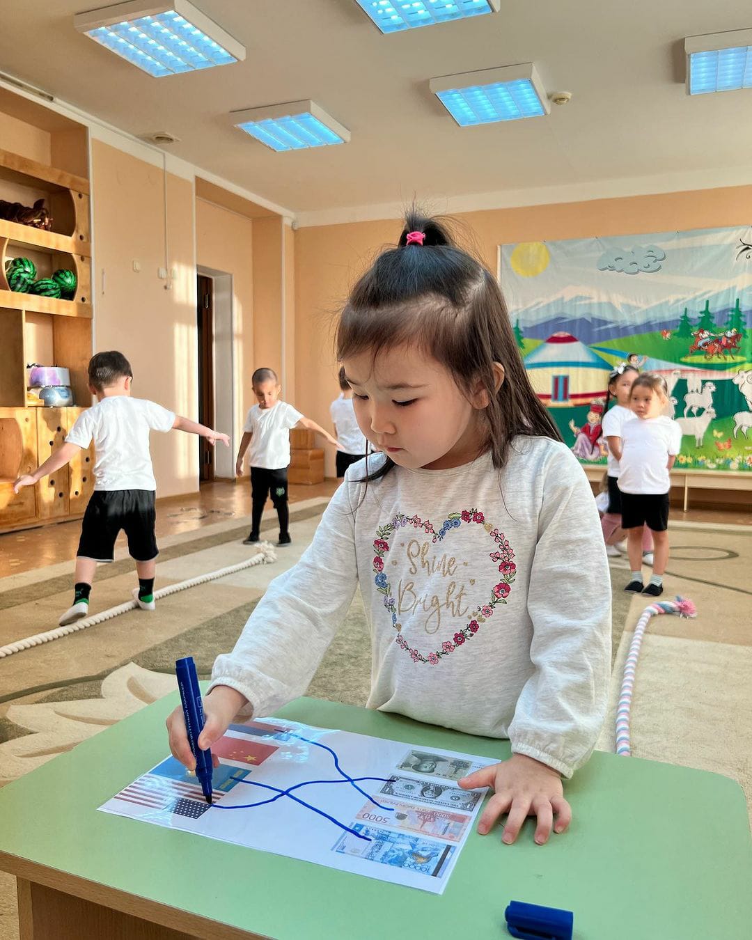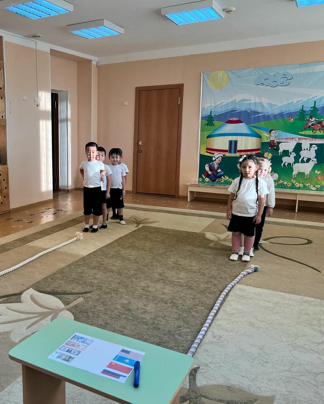 Модель ұлттық құндылықтарды балаларға ерте жастан толыққанды дамытудың заманауи теориялармен үйлестіруге бағытталады.Модель міндеттерінде көрсетілгендей қазіргі заманғы теорияларды ұлттық ерекшеліктермен үйлесімді ұштастыру,зерттеу жұмысының мәдиениетін қалыптастыру. Ойын технологиясының басты мақсаты - мектепке дейінгі және балалардың даму деңгейін толыққанды мотивациялық негізін қалыптстыру үшін,дағдылар мен қызмет шарттарына жұмыс істеу.Ойын технологиясы ұйымдастыру талаптарына сәйкес болуы тиіс.Технологиялық жүйе,ғылыми база,жүйелілік,басқарылуы,тиімділігі,жаңадан өндірілуі.Ойынды таңдау балалардың қызығушылығын танытып,ойынға белсенді әрекет етеді және нәтижесін алады.Ойын технологиясының басты компоненті-педагог пен балалардың тікелей және жүйелі қарым-қатынасы. Балабақшамызда балалардың ұлттық тұлғасын қалыптастыру мен дамыту үшін ең алдымен оның жас және дербес ерекшеліктерінің психологиялық-педагогикалық негіздерін есепке ала отырып,ұлттық тәрбие беруді ұлттық психологияның негізгі ұстанымдарына сәйкес жүзеге асырамыз.Дидактикалық ойындар арқылы ұлттық құндылықтарды дәріптейміз. Танымдық-дамытушылық ойындарды ойлап табу ұйымдастырылған іс-әрекетінде баланың танымдық,зияткерлік дағдыларын дамытады. Ұлттық ойынды ұтымды пайдаланса балада өз бетімен жұмыс жасау дағдылары қалыптасады,білімге құштарлығы артады,халықтың асыл мұрасын бойына сіңіріп,ұлттық сананы қалыптастыруға болады.Балабақшамызда ұлттық тәрбие бағытында "Таңғажайып жеті киіз үй" атты дамытушы құралдар жасадық. Ұлттық өнерге қызығушылыққа ,сүйіспеншілікке,балаларға ұлттық сәндік-қолданбалы өнер түрлері-зергерлік бұйымдар,ұлттық киімдер,киіз үй жабдықтары мен оның жасау жиһаздары мен оларды өрнектеген ою-өрнек түрлерін таныстыруда дидактикалық ойындар жинақталды.
